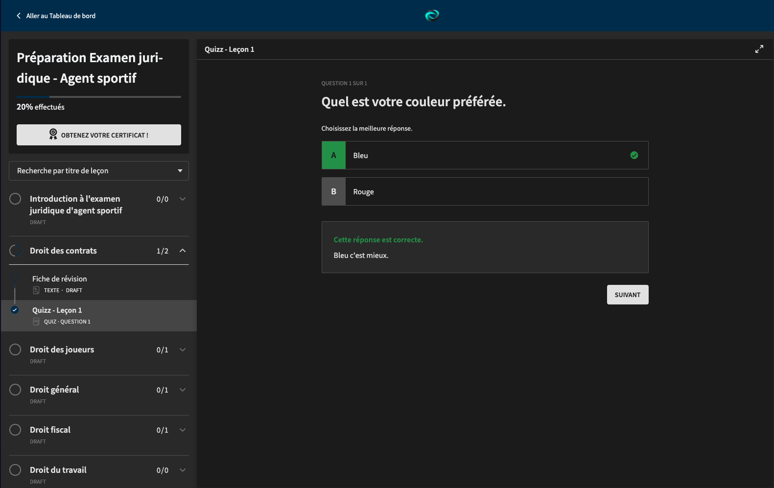 - Objectif : Évalue l'aptitude à exercer en tant qu'agent de footballeur en France.